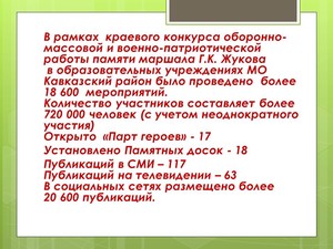 • Краевой конкурс оборонно-массовой и военно-патриотической работы памяти маршала Г.К.Жукова