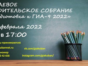 Краевое родительское собрание "Подготовка к ГИА-9 2022" вт, 18.01.2022 - 16:04 ГИА Подробнее о Краевое родительское собрание "Подготовка к ГИА-9 2022"